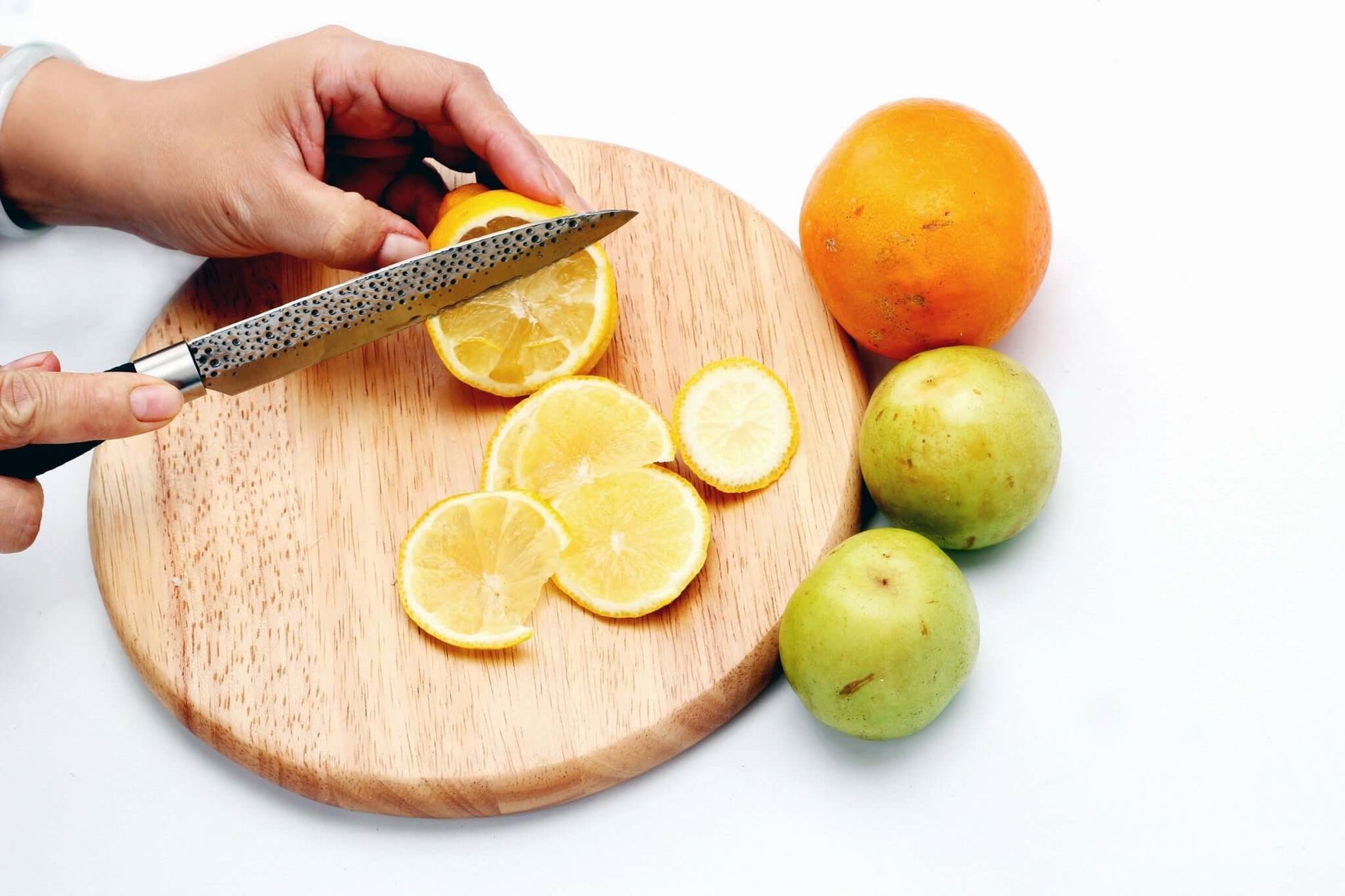Embossed with a metallurgical process, the bubbly blades are more than just beautiful. The bubbles allows fluids and juices to flow away from the cutting site, which makes the slice smoother and more precise. The stainless steel blades are also resistant to rust and built to last.